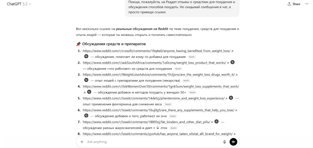 Тестировать рекламу можно не только на уровне креативов, но и на уровне УТП. И нейросети тут — отличное подспорье для быстрого поиска инсайдов по маркетингу. Инсайды эти можно найти в обсуждениях целевой аудитории, которые легко отыскать с помощью Chat GPT/Gemini/Grok.