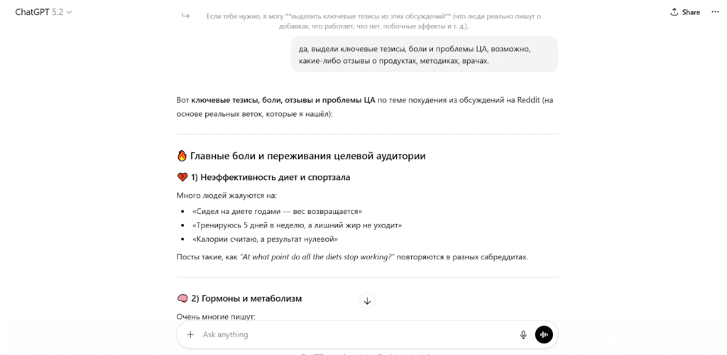 Но с помощью текстовых нейросетей можно и обобщать обсуждения целевой аудитории.