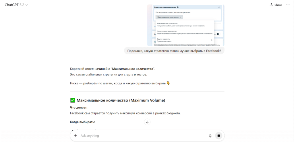 Нужно вставить скриншот из рекламного кабинета в чат-бот ИИ и попросить разъяснений, а также подсказать, что конкретно вам подойдёт больше.