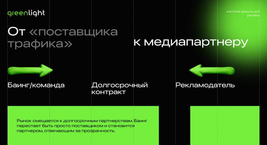 Поэтому теперь рынок смещается в сторону долгосрочных партнерств, где баинг перестает быть просто «поставщиком трафика» и становится медиапартнером, отвечающим за качество, объем и прозрачность.