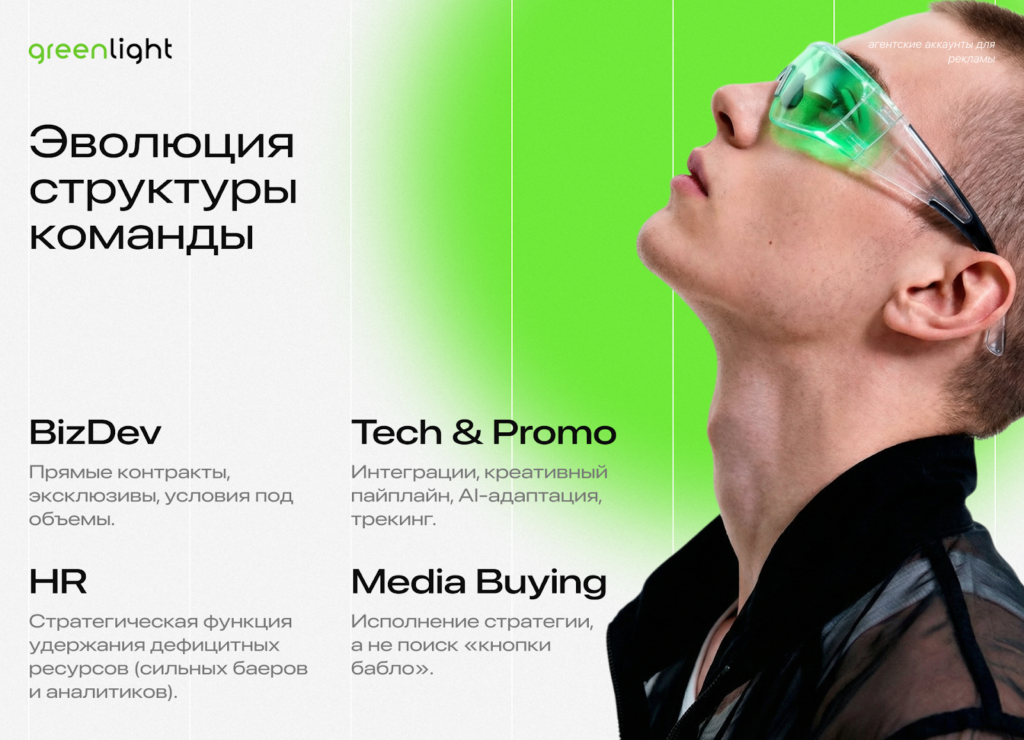 Также внутри команд появился запрос на смежные функции. Формируются bizdev-отделы, отвечающие за прямые контракты, эксклюзивы и условия под объемы. Технические и промо-команды закрывают интеграции, трекинг, креативный пайплайн, работу с AI и адаптацию под источники, а HR становится стратегической функцией, так как сильные баеры, аналитики и технари — дефицитный ресурс, напрямую влияющий на устойчивость бизнеса.
